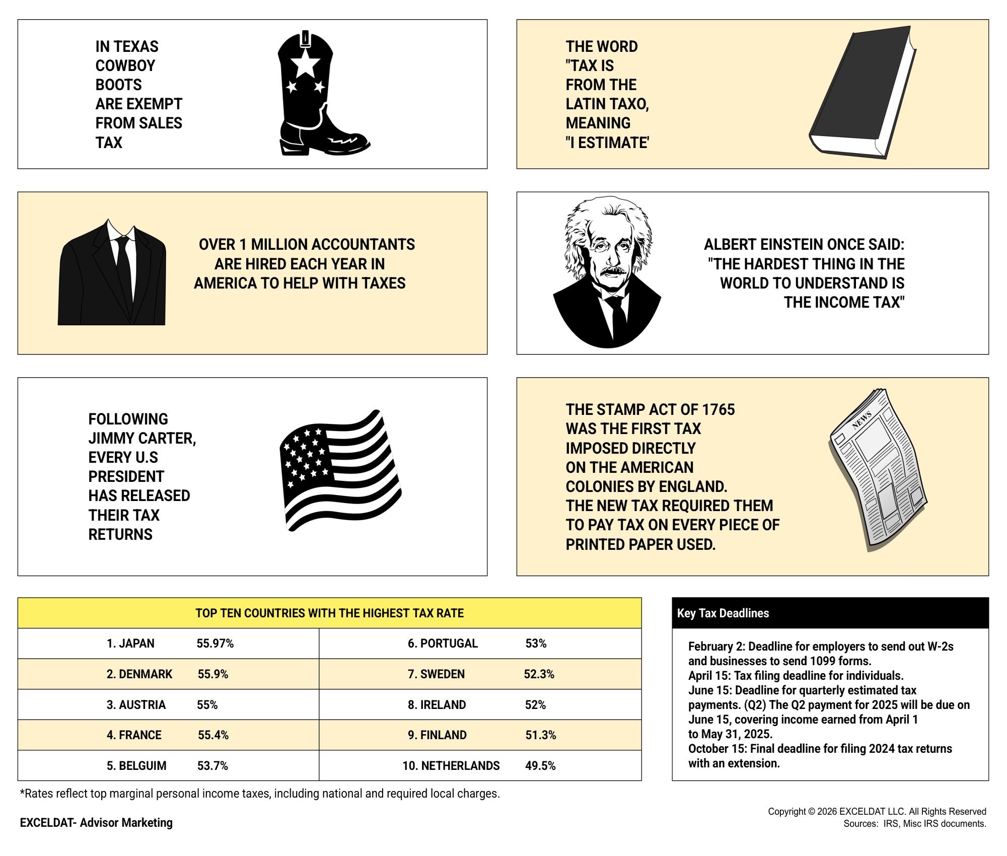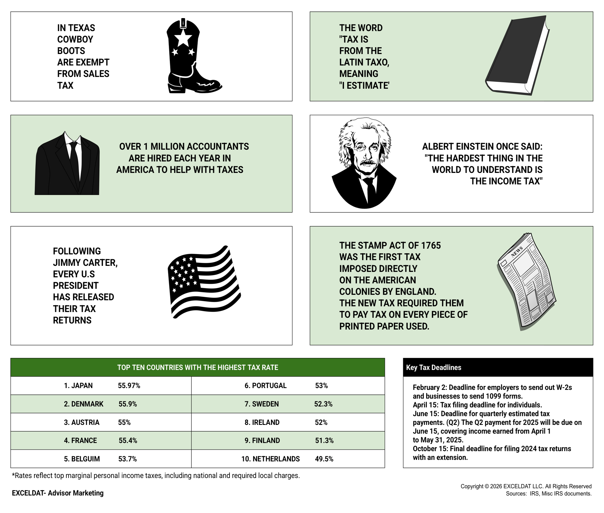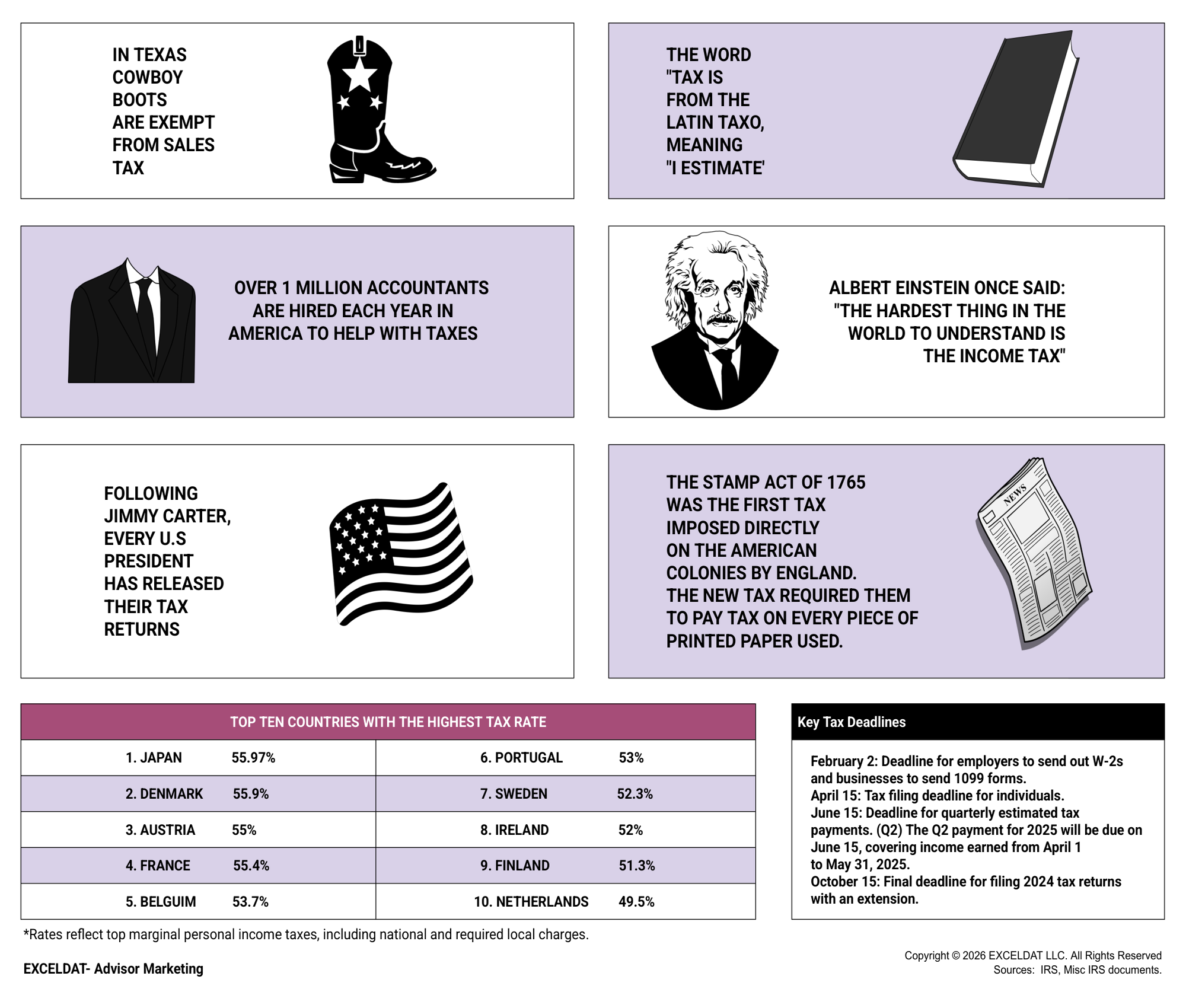 - Deadline for quarterly estimated tax payments.